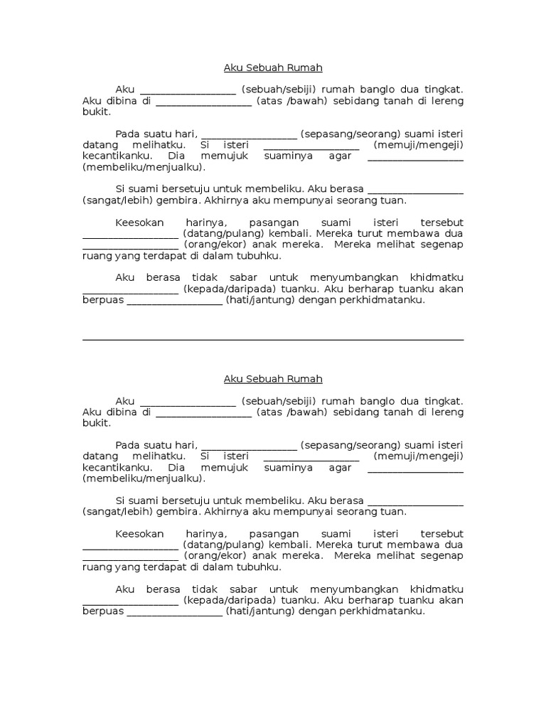 Aku diberi nama Sri Belaga. Live worksheets Malay Bahasa Melayu BM Karangan Aku Sebuah Basikal. Selain itu rumah juga merupakan tempat untuk kita merehatkan diri.